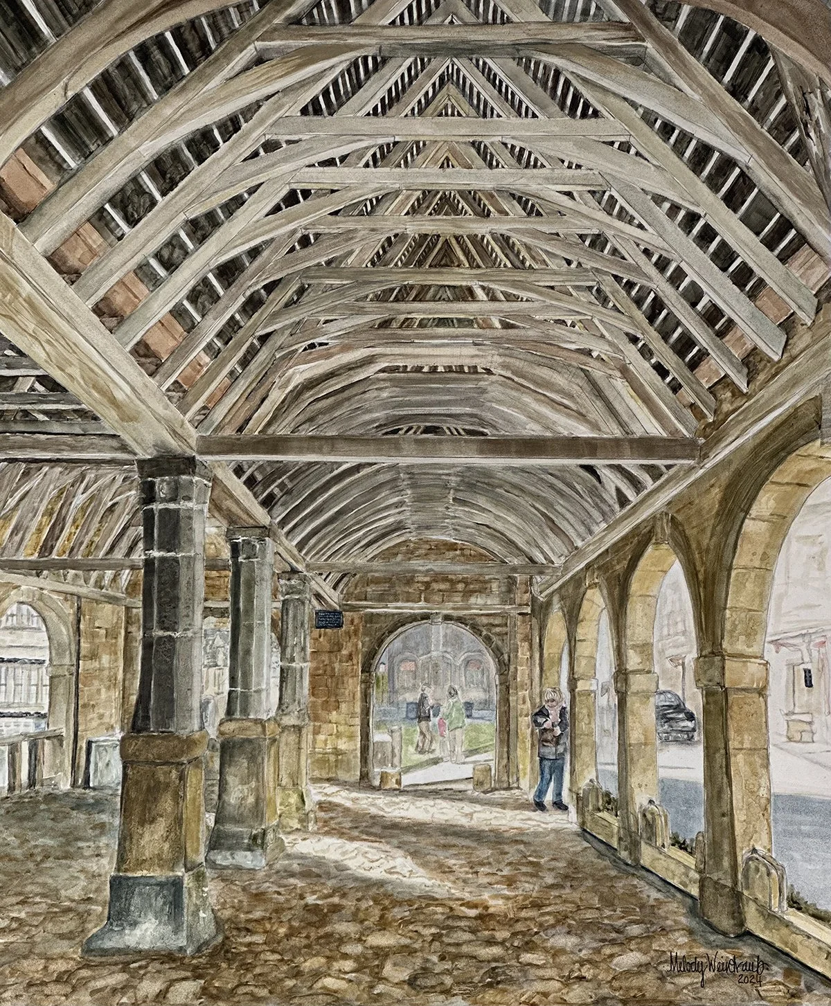 “On Holiday in Chipping Campden” (2024). 30” x 20” watercolor. Framed larger. Available. Inquiries click HERE.