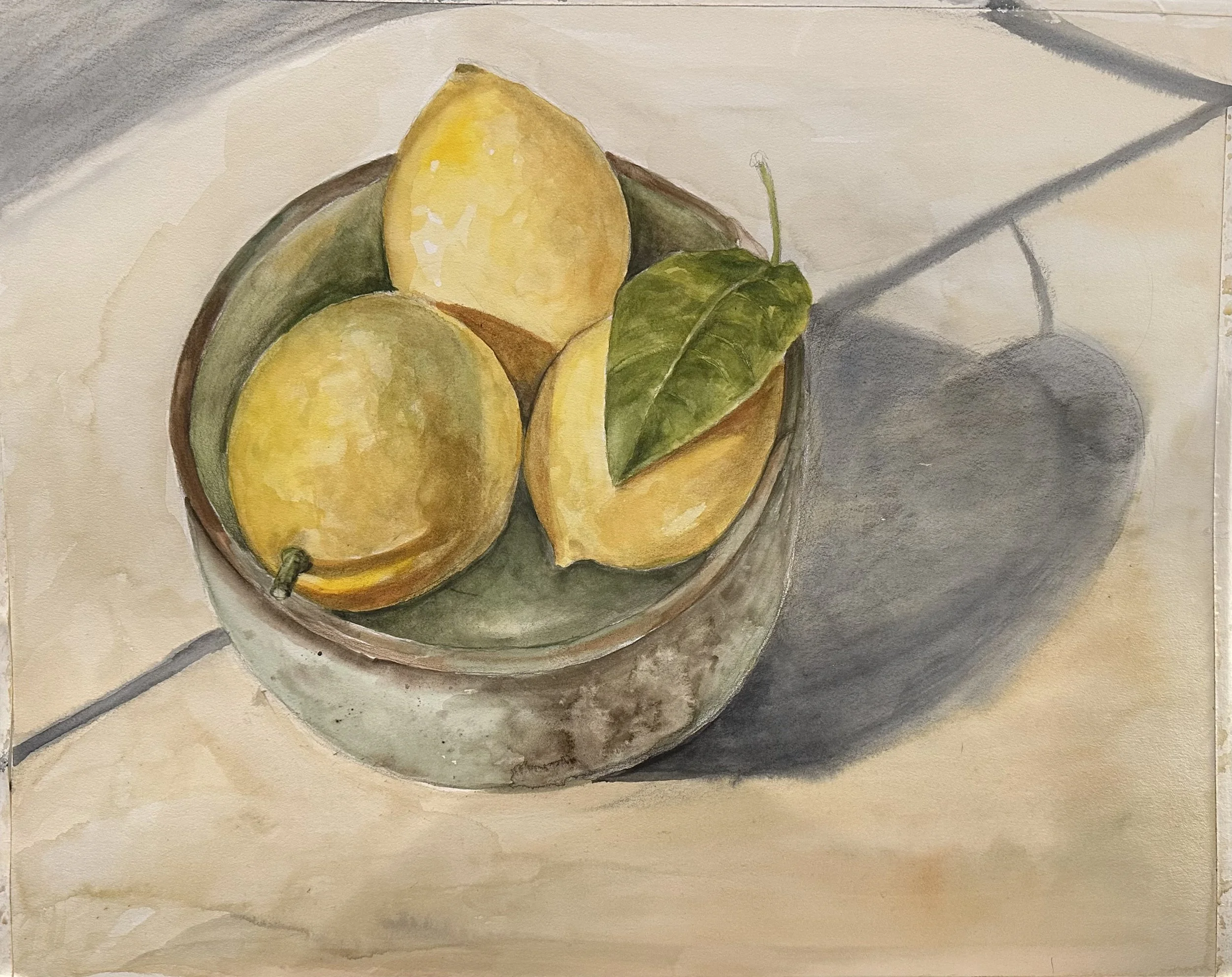 Three Lemons in a Bowl, (2026) 20 x 15 .Watercolor. Available. Inquiries click HERE.