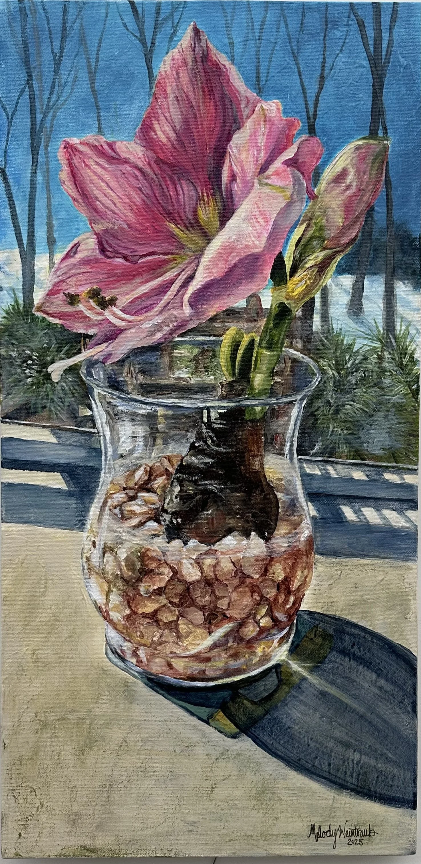 Pink Amaryllis (2025) 12 x 24 Acrylic on Wrapped Canvas. Available. Inquiries click HERE.