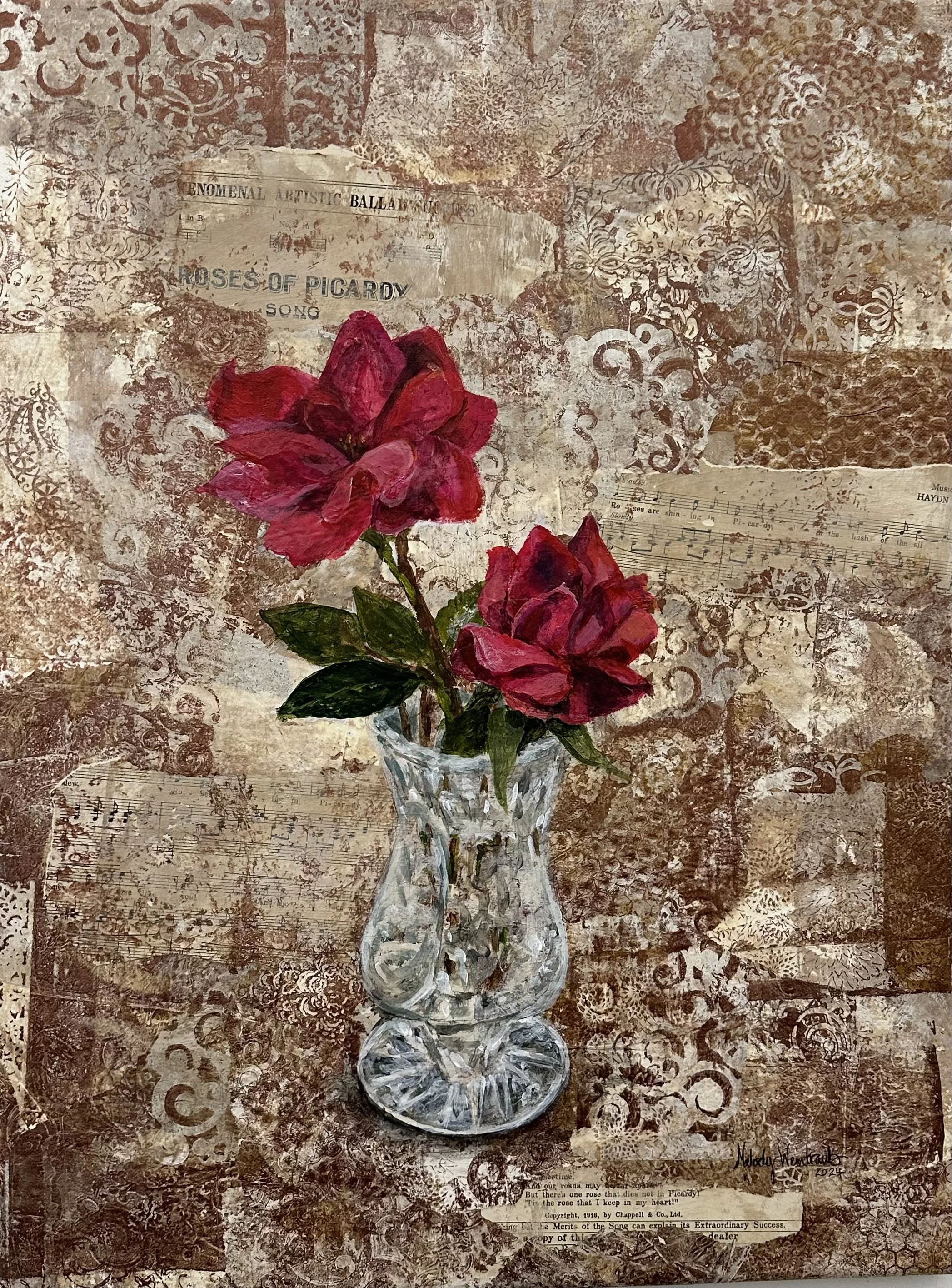 The Roses of Picardy, (2024). Mixed Media Collage. 16 x 24 Available. Inquiries click HERE.