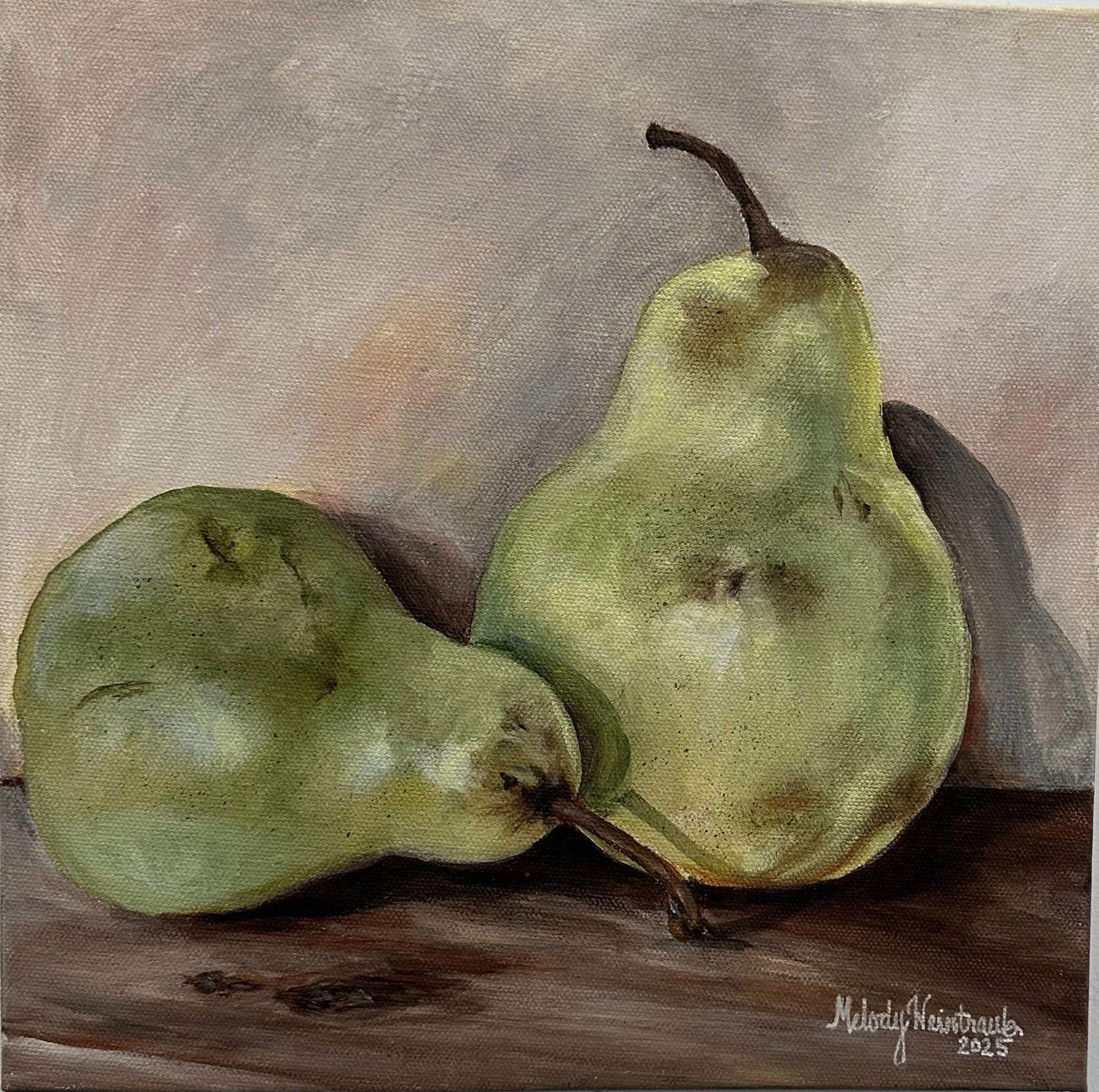 A Pair of Pears, (2025) 12” x 12” Acrylic on Wrapped Canvas. Available. Inquiries click HERE.